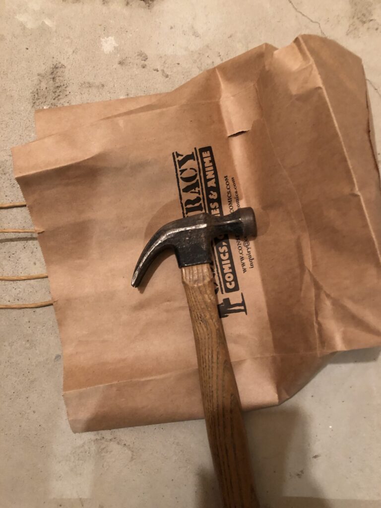 A unseen reference but part of the process which will be shown below is that his hammer was used to break the vinyl (Figure 1)