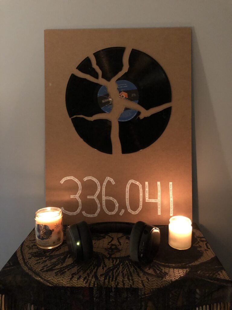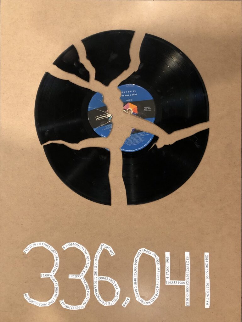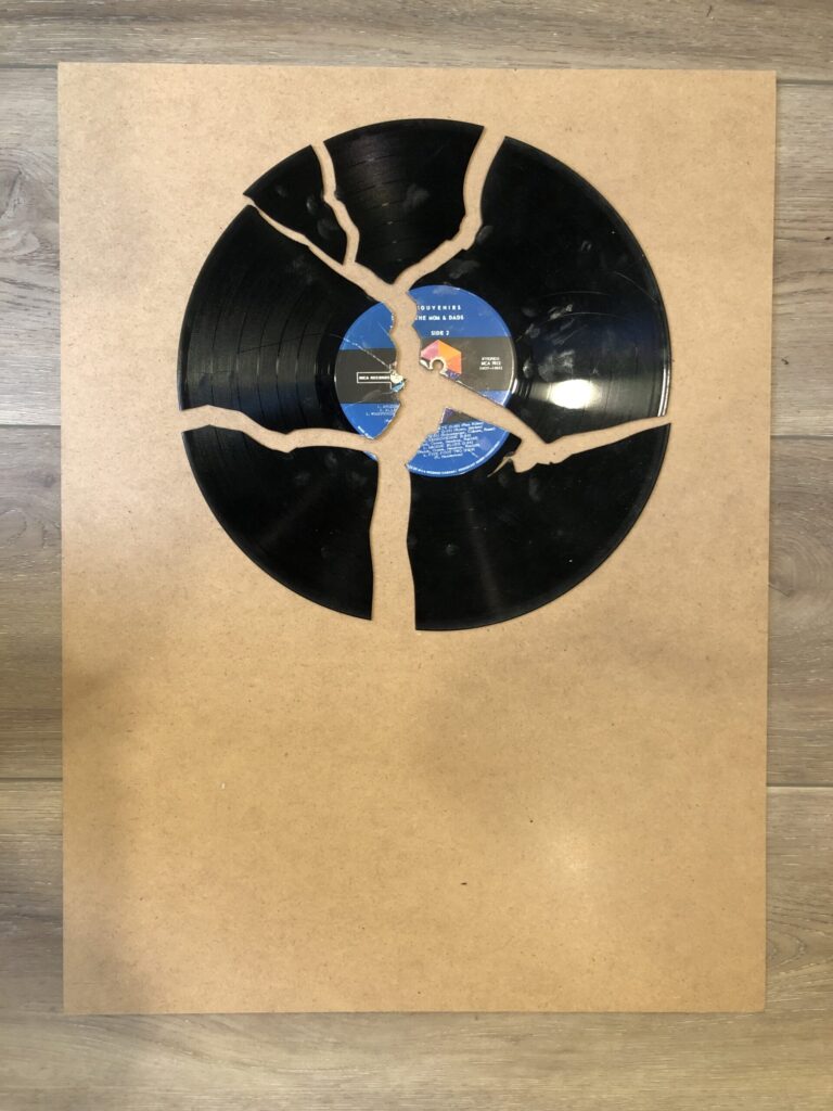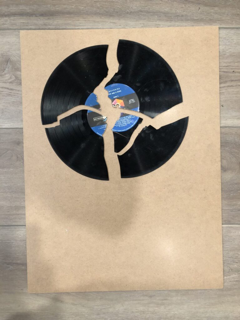 6 pieces of fragmented vinyl to represent the 6 siblings he had which the fragmented pieces are also in the shape of tree representing that he has a tree in his name as-well as a family tree