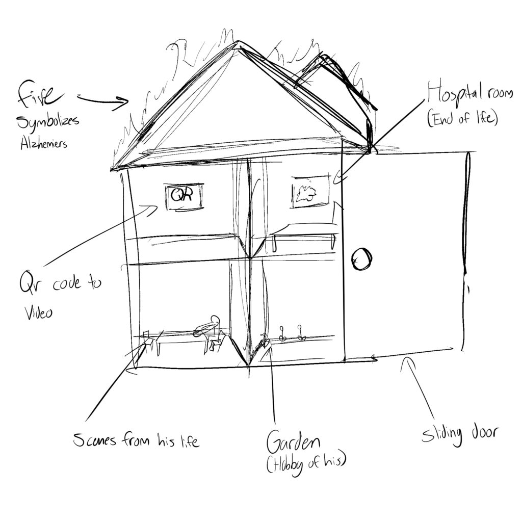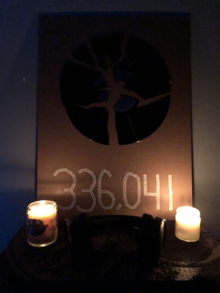 If I was to display this work in a gallery I would want it to be dark as seen in this picture with two candles around it as if its a funeral or morning with the headphones left in the middle as seen in the photos. The video would be on projector and put on the wall about 10 inches up from the plaque. The silence before you put on the headphones is to symbolize you stepping into his mind so its important that its not playing out loud.