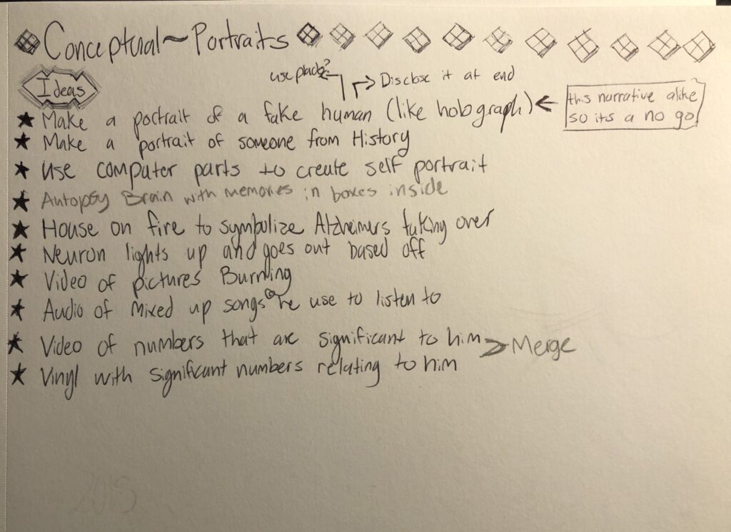 Initial Idea Jotting and Drafts Including Ideas that were sidelined