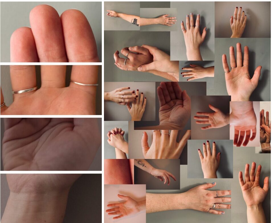 Kate and I wanted to capture the idea that hands are a way to understand and interpret someone, as they are the closest body part besides the face that can reveal someone’s identity. Our hands can dictate a lot about who we are, as we all have different physical conditions of our hands that are either present since birth or due to our routine and habits, as well as different ways of expressing ourselves through aspects such as tattoos or jewelry. Each aspect of our hands shape who we are, and can tell provide narrative clues to a person’s identity and story.