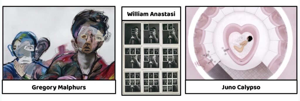 - In Nine Polaroid Photographs of a Mirror (1967), he took photos of himself looking into a mirror. Showing the act of looking and reflection makes me think more deeply about identity and one’s self-perception.