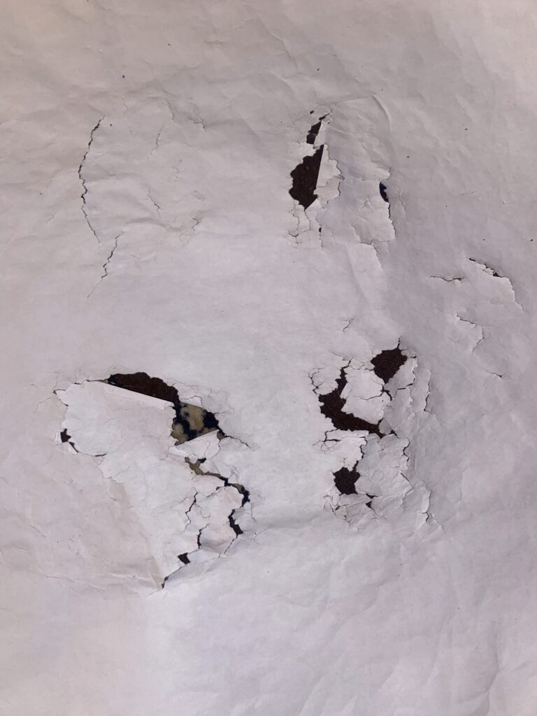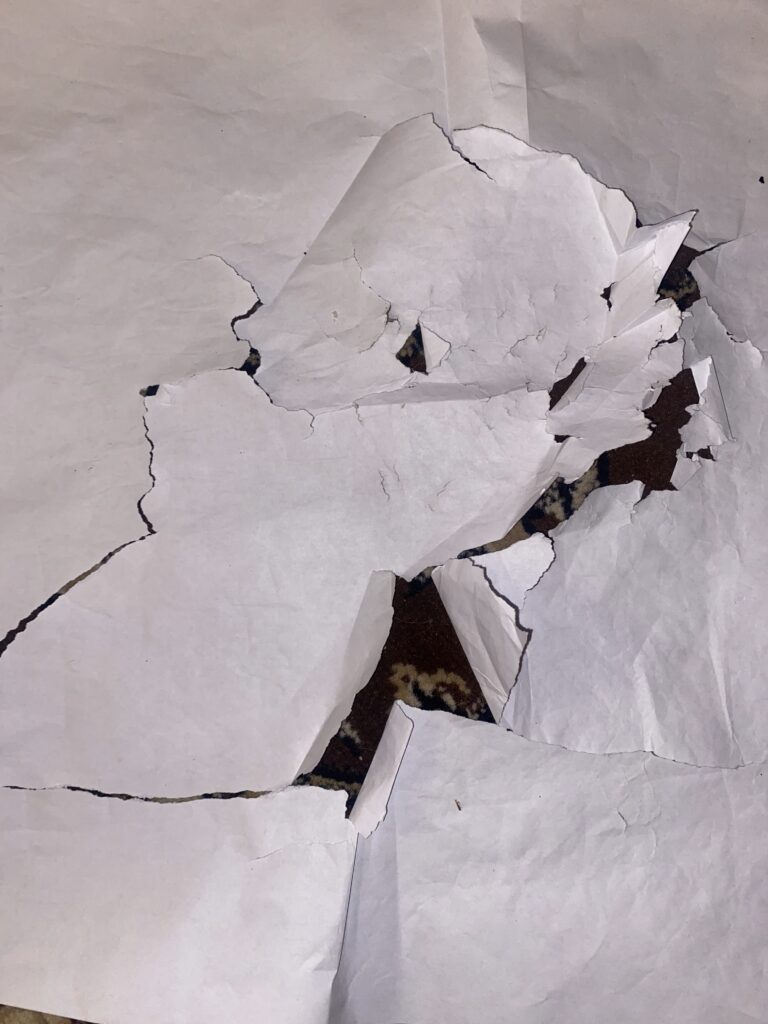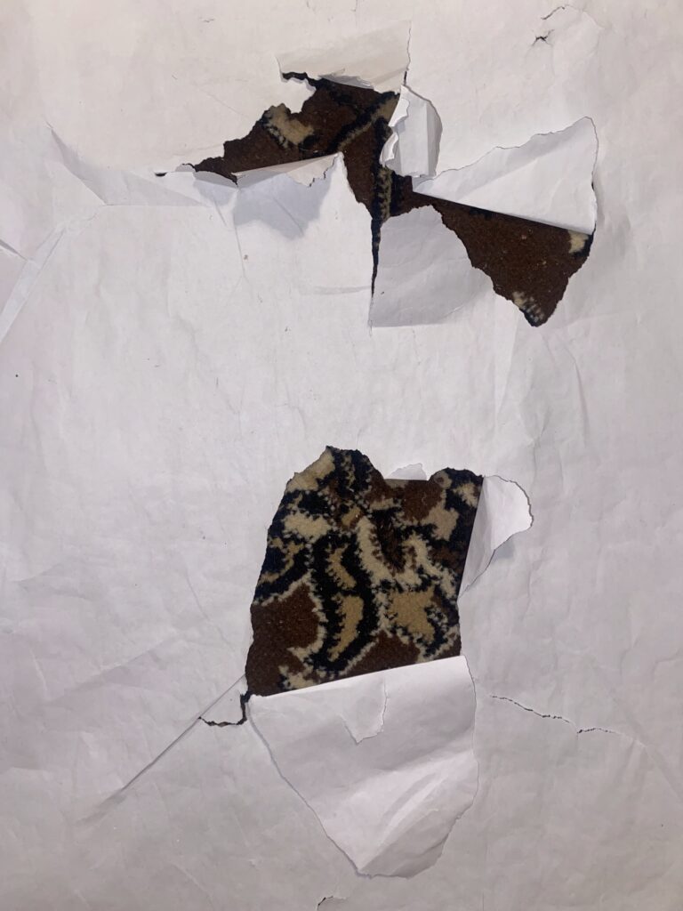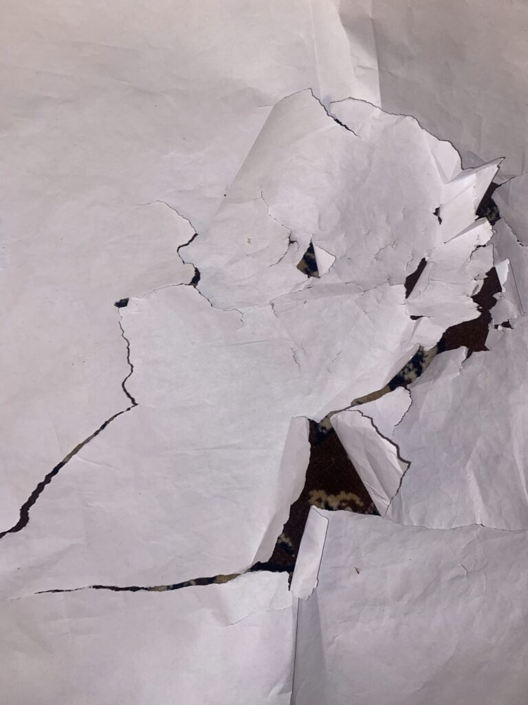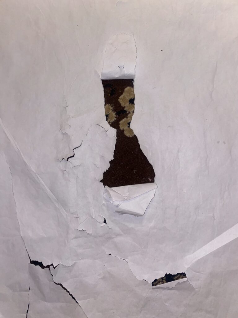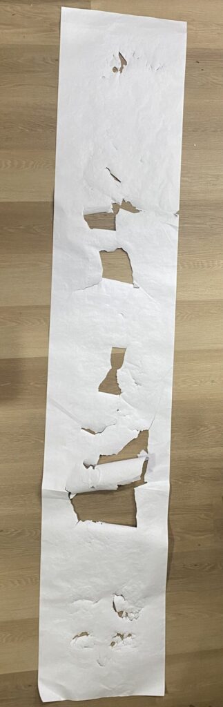 The act of “putting yourself in someone else’s shoes” means to experience things from their perspective and to learn about them. The way we walk is something so personal to us that isn’t often represented. There are many aspects that make an individual, the way we hold ourselves, the way we write, the way we express ourselves. Walking is a small part of that, one that is often overlooked. Each person has a different one, some drag their feet, some walk on their tiptoes, some favour one leg to another. The different shoes brought different conditions aswell. Some were muddy, some had a heel, some were only meant to be worn indoors. Each variation creates different marks which are reflected through the different rips and crinkles in the paper.