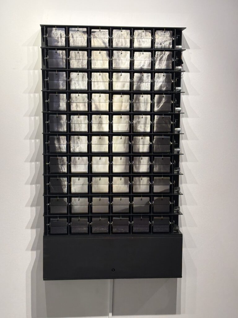 One work I found rather interesting was Fall/Chute by Diane Landry who made a mechanical mural made of motorized flipbooks that recreated a waterfall. The piece would be triggered by any movement which would bring the waterfall to life. The idea of bringing life to something mechanical is something I find really interesting, but what really intrigued me was the idea of water as a legal and spiritual entity.