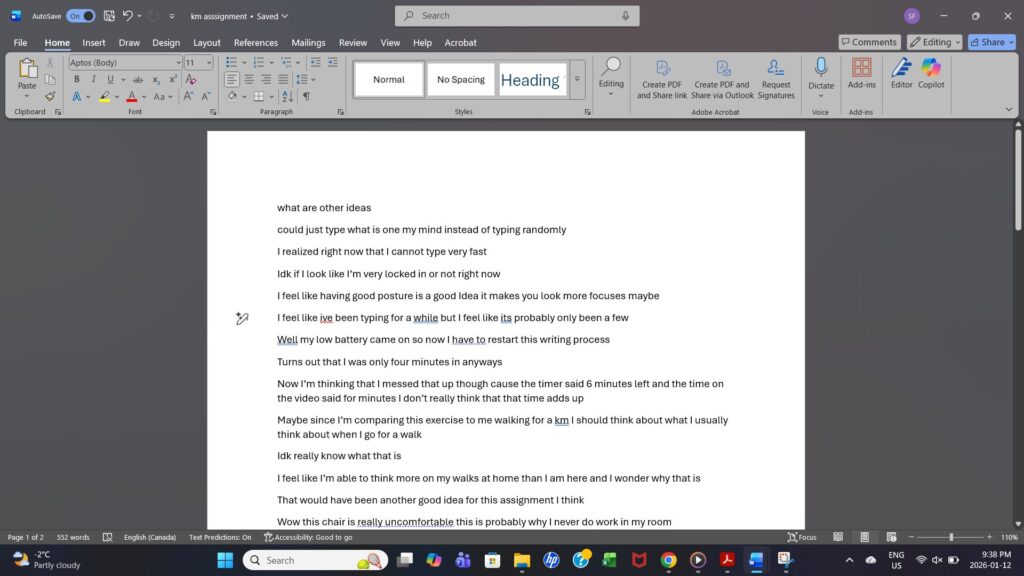 To do this, I walked a Km, which ended up taking me 10:50 minutes, and I then typed for the same amount of time.