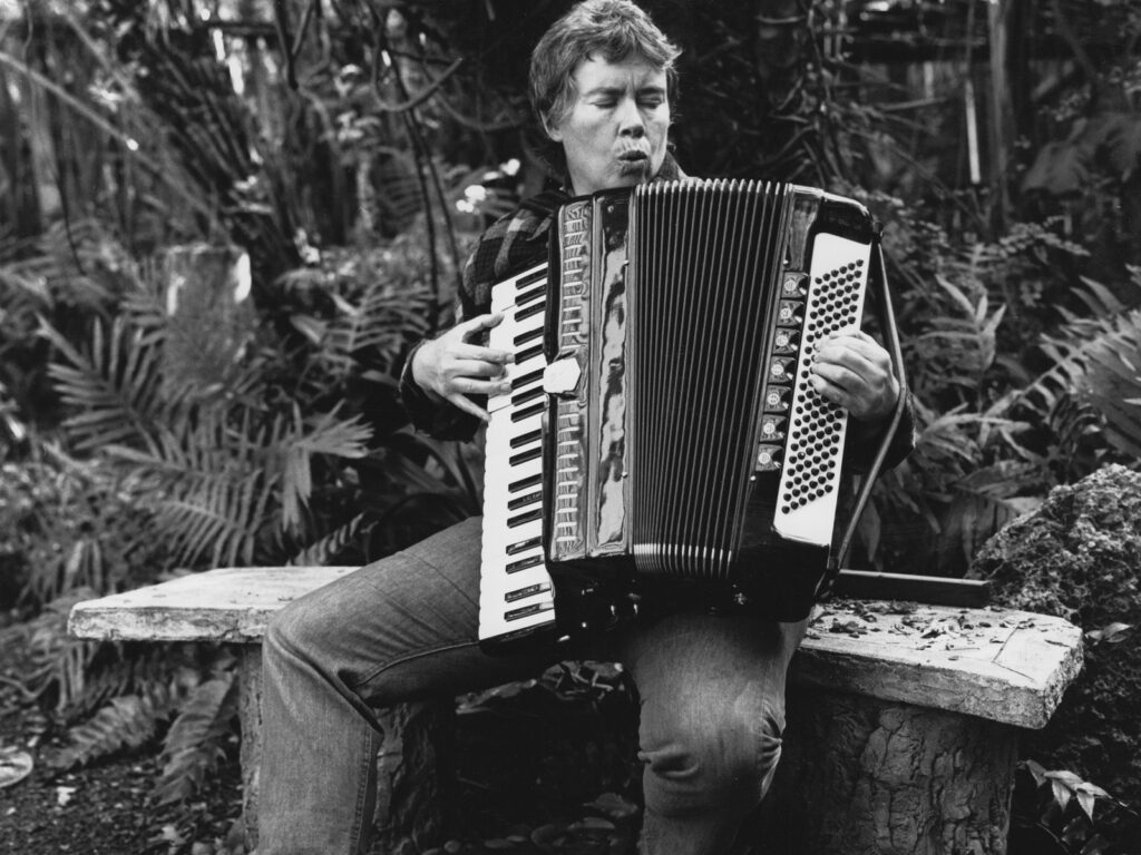 Pauline Oliveros, Playing the Accordian, Photo