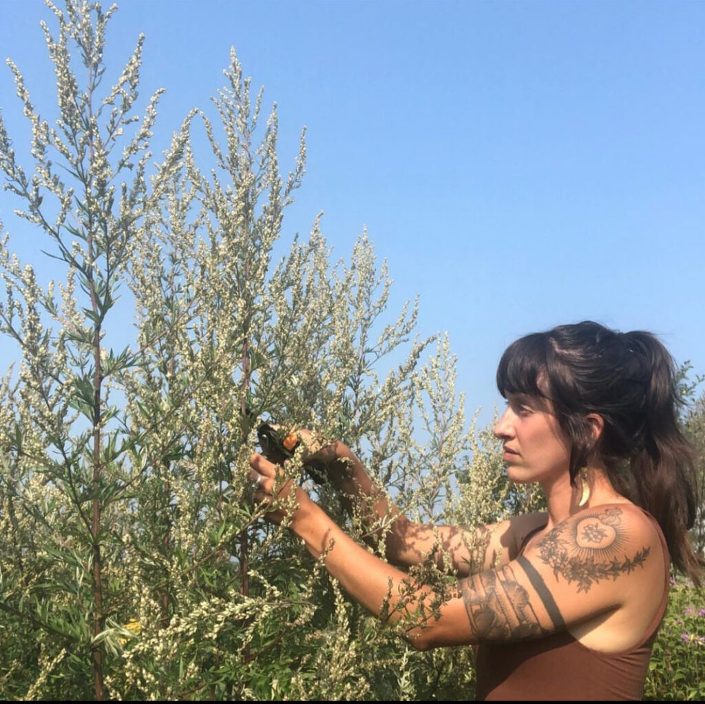 Hi, I’m Dani. I’m excited to be back in school to write, research and make art at the intersection of land, liberation, queerness, and craft. Outside of school, I study and teach about plant medicine, ecology, and land-based art. Here’s me with one of my fave plants, mugwort =]