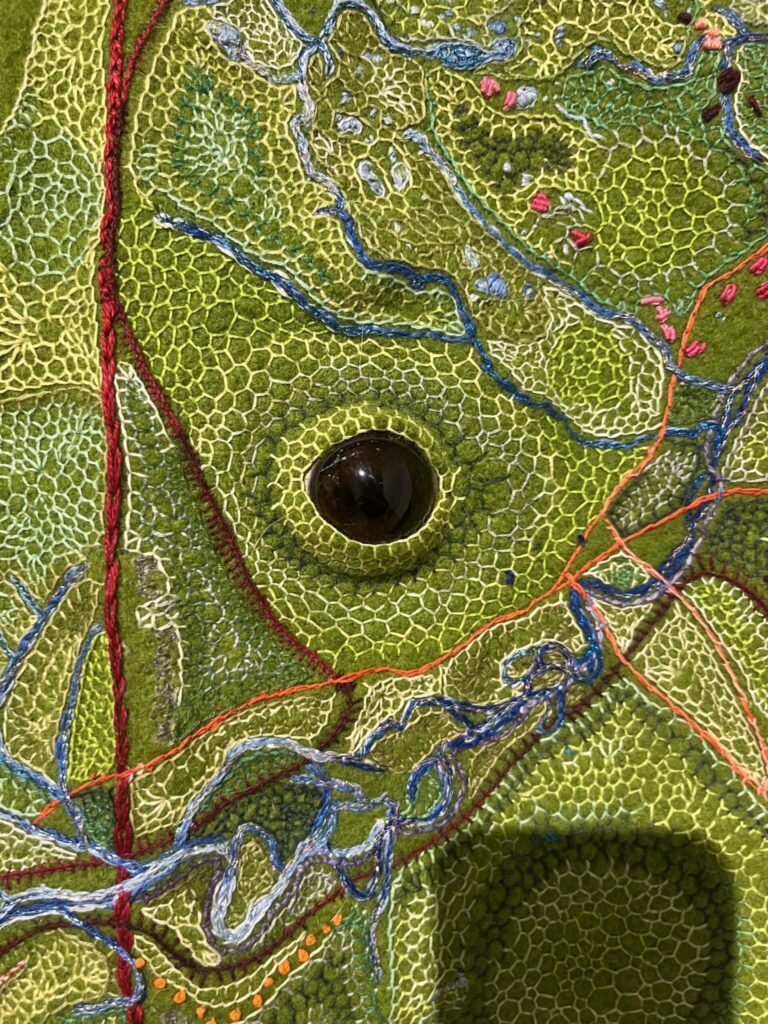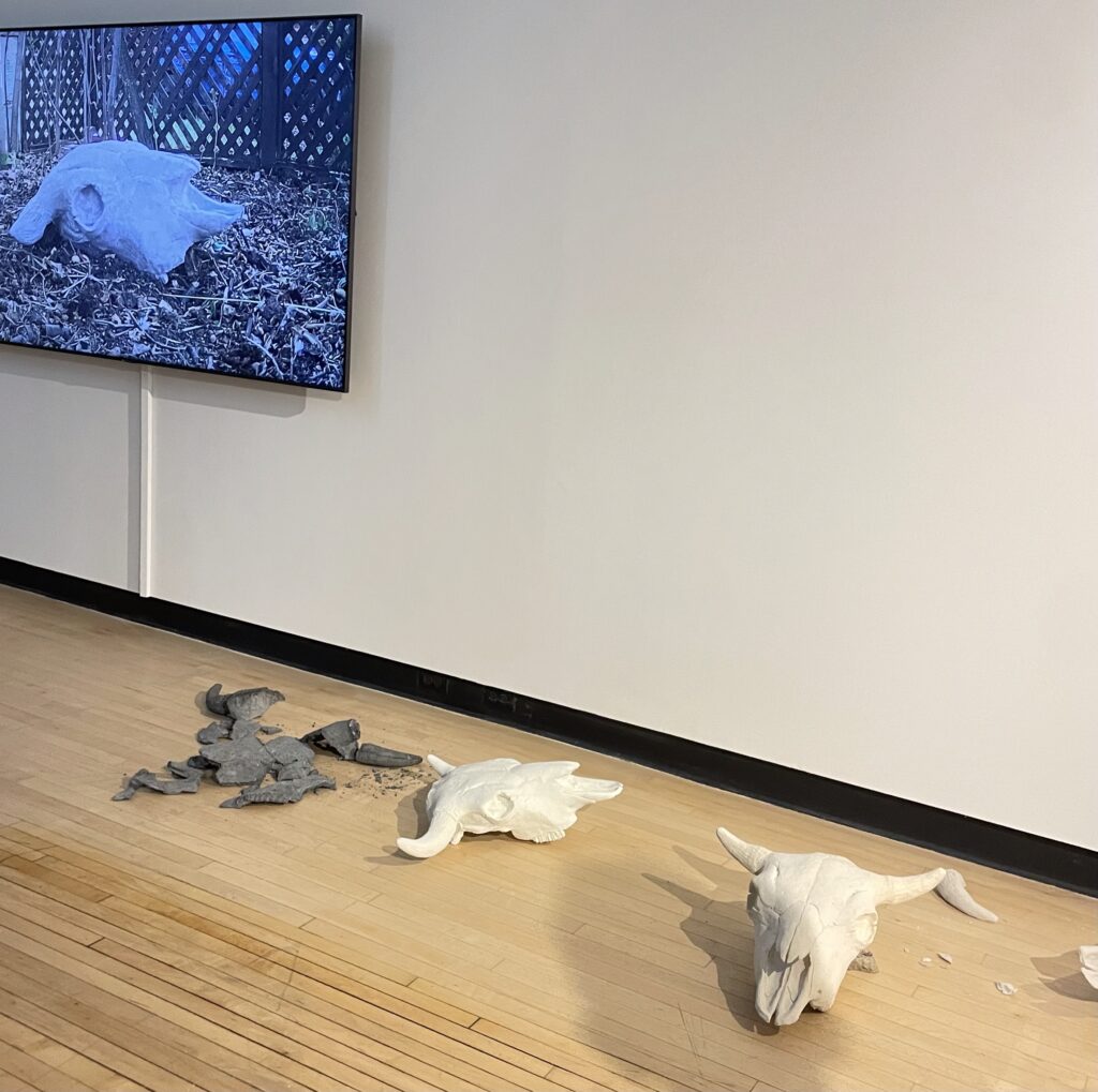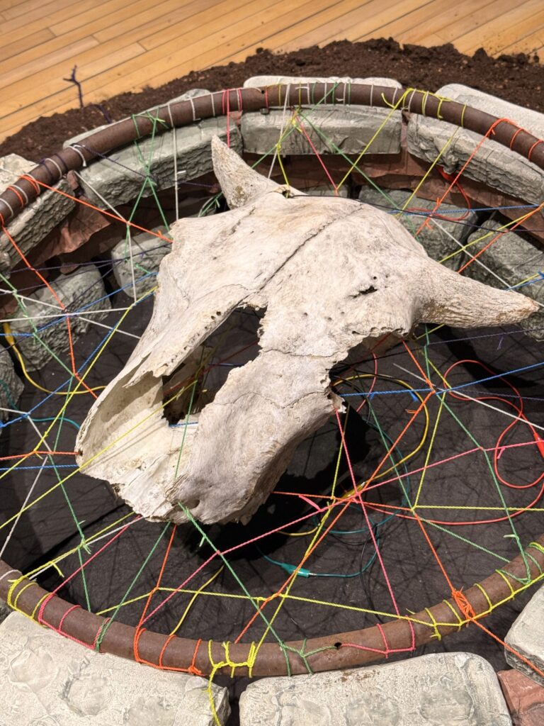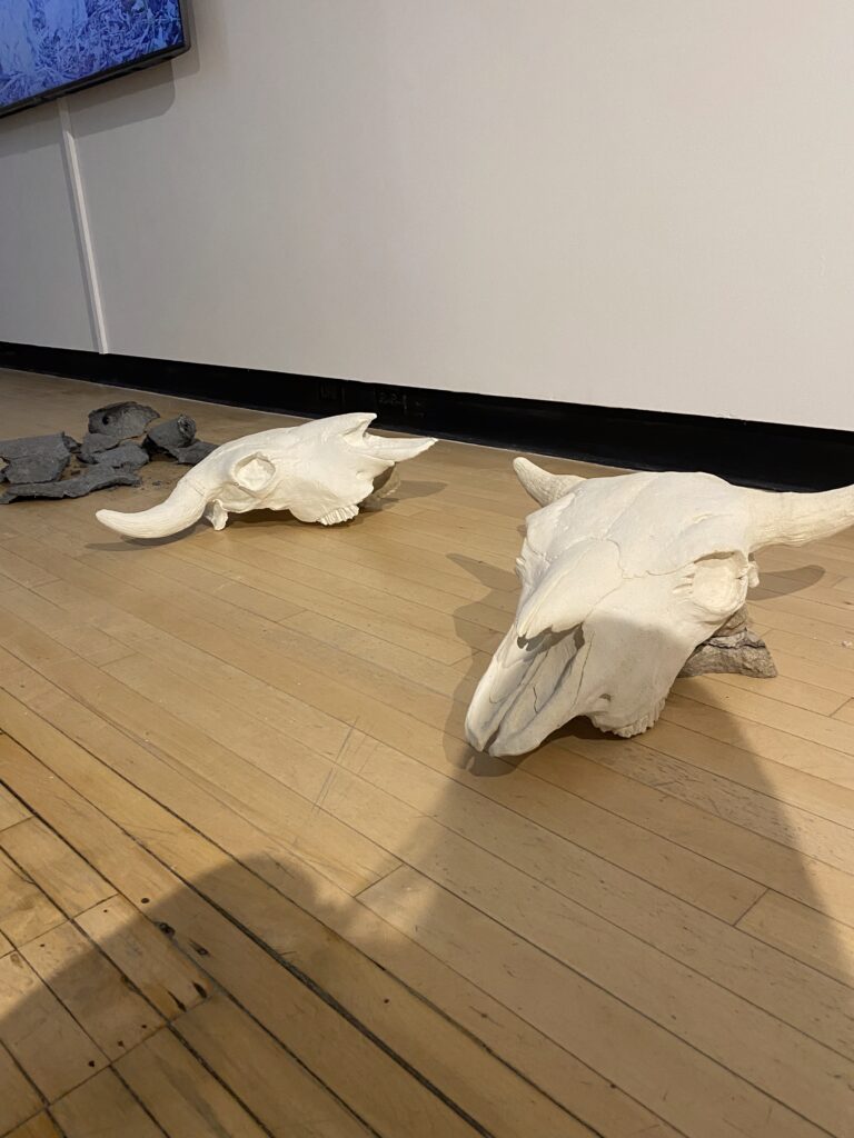 The second piece I chose was by artist Sheri Osden Nault. When I first encountered the work, I mistook the sculptures for real animal skulls. However, I soon learned they were actually crafted from unfired clay mixed with seeds and soil. Molded from an actual bison skull, the sculptures are life-sized, which gives them a strikingly realistic appearance. Each skull is hollow and designed to be filled with mulch before being placed in the artist’s garden. Over time, they will slowly decompose and return to the earth, allowing wildflowers and local medicinal plants to grow from within them. It’s a powerful representation of the circle of life, cultural influence and giving back to the Earth, which gives us so much in return. I’m very inspired by the way this piece captures transformation over time. It reminds me of the ways in which life, death, and regeneration are connected.
