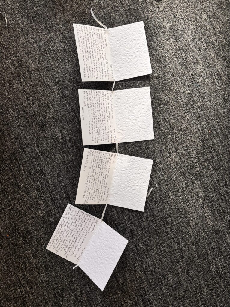 After receiving feedback during the critique, I do wish I had kept my video in real time instead of speeding it up. It would have better conveyed the slow, seemingly endless nature of the work, the feeling of constantly asking myself, “Is this it? Am I finally done?” It was a time-consuming process, but deeply rewarding.